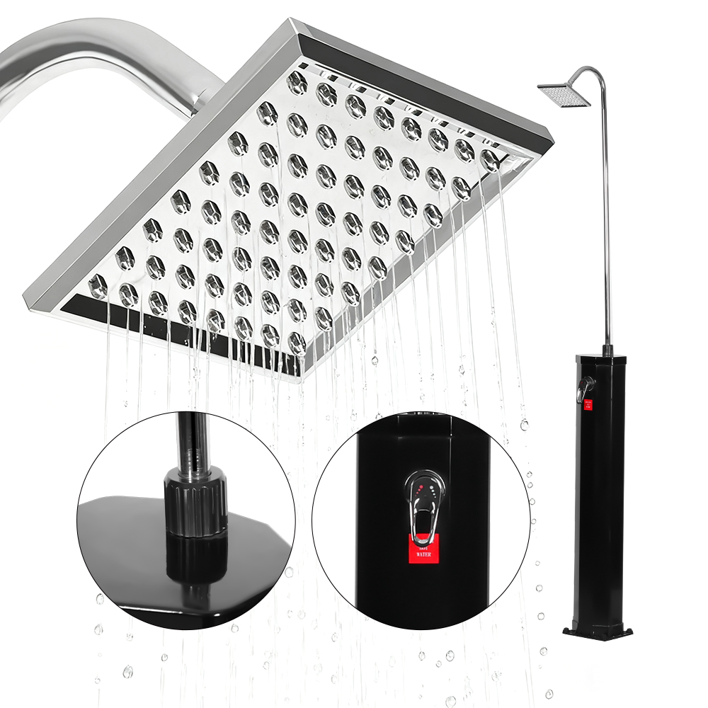 این دوش خورشیدی بیرونی تک بدنه مشکی مربع پی وی سی LY18L06 18L مقاوم در برابر اشعه ماوراء بنفش برای استخر شنای باغ، طراحی سبک وزن را با ساختاری بادوام ترکیب می کند و جداسازی، حمل و نقل و راه اندازی آن را در فضاهای مختلف بیرونی آسان می کند. پایه سنگین آن، ساخته شده از فولاد ضد زنگ، پی وی سی، ABS، مس، و سایر مواد مقاوم، پایداری قابل اعتمادی را در هر کجا که قرار می گیرد، تضمین می کند و استفاده ایمن و راحت را تضمین می کند. سر دوش باران بزرگ عملکرد همه کاره ای را ارائه می دهد که به لطف اتصال توپی یکپارچه خود می تواند 360 درجه بچرخد و به شما امکان می دهد از خنک شدن بهینه از زوایای مختلف لذت ببرید. برای راحتی بیشتر، یک ضربه گیر پا داخلی شستشوی آن را بدون استفاده از دوش سقفی آسان می کند.