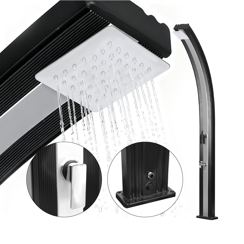این دوش خورشیدی استخر شنای روباز خم شده آلومینیومی LY30L01 دارای یک لوله دوش آلومینیومی 30 لیتری است که آب کافی را برای یک تجربه دوش راحت و لذت بخش، چه در باغ، چه در کنار استخر یا هر جای دیگر، فراهم می کند. شیر مخلوط کن تک اهرمی امکان تنظیم سریع و آسان دمای آب را فراهم می کند و به شما این امکان را می دهد که به راحتی دمای ایده آل را مطابق میل خود تنظیم کنید و تجربه کلی کاربر را افزایش دهید. لوله دوش آلومینیومی نه تنها ظرفیت کافی را فراهم می کند، بلکه دوام و رسانایی حرارتی عالی را نیز ارائه می دهد و باعث می شود دوش خورشیدی استخر شنای روباز خم شده آلومینیومی LY30L01 کارآمدتر و راحت تر شود.