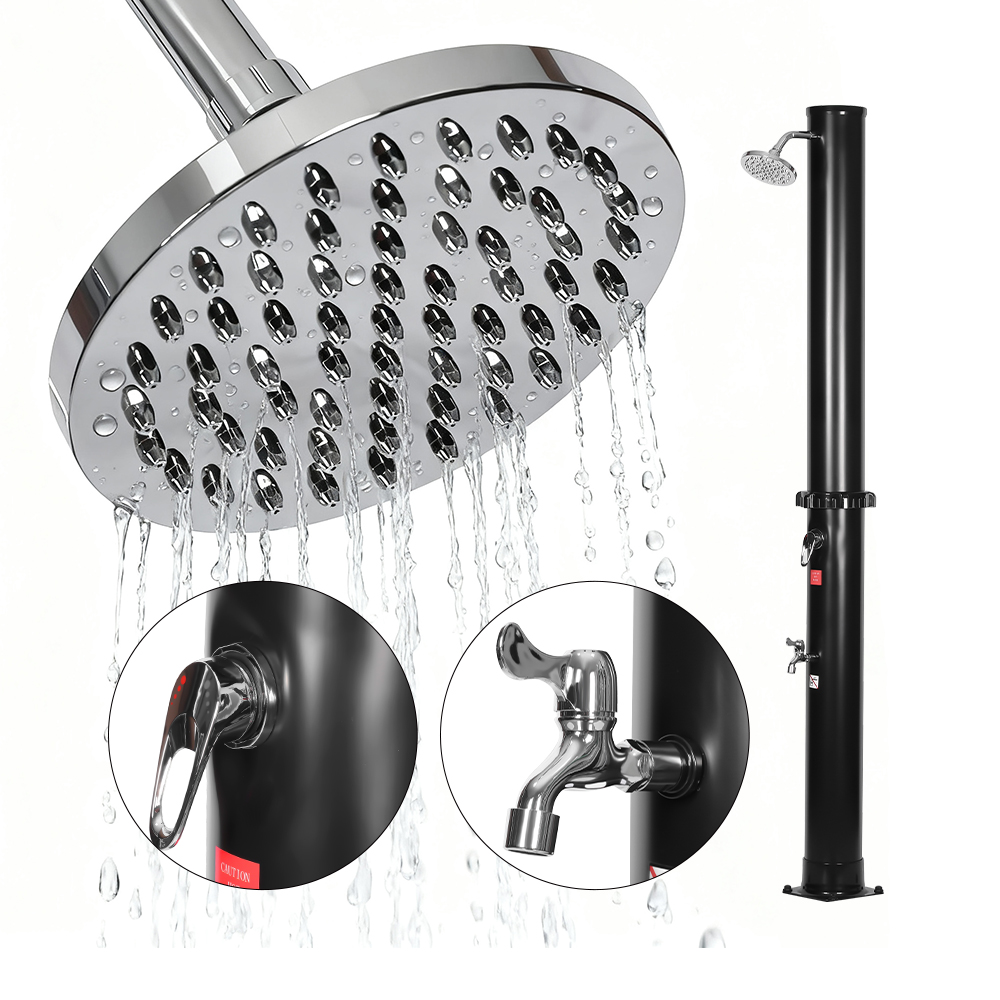 این دوش خورشیدی باغچه بیرونی LY35L01 با لوله دوش با ظرفیت بالا برای استفاده در فضای باز مناسب خانواده طراحی شده است و دارای یک لوله دوش سخاوتمندانه است که می تواند آب را تا حدود 60 درجه سانتیگراد در نور شدید خورشید بدون نیاز به برق گرم کند. به سادگی یک شلنگ استاندارد باغچه را برای پر کردن لوله دوش وصل کنید و همه می توانند از یک دوش با طراوت در باغ، کنار استخر یا در یک کمپینگ لذت ببرند. برای راحتی بیشتر، یک سینی فلزی تعبیه شده برای نگه داشتن ژل دوش یا سایر موارد کوچک در دسترس است، در حالی که یک سوراخ زهکشی در پایین، جریان صاف آب را تضمین می کند و از ایستادن آب جلوگیری می کند. در صورت عدم استفاده، دوش را می توان به راحتی برای ذخیره سازی جمع و جور جدا کرد و آن را برای استفاده فصلی یا حمل و نقل به مکان های مختلف عملی می کند.