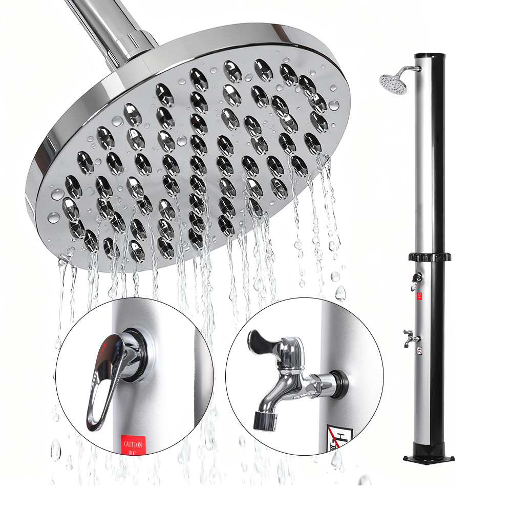 این دوش خورشیدی قابل تنظیم و ضد آب LY35L02-CR عملی بودن را با راحتی ترکیب می کند و دارای یک لوله دوش بزرگ است که تنها با استفاده از نور خورشید تا حدود 60 درجه سانتیگراد گرم می شود و نیاز به برق را از بین می برد. به سادگی یک شلنگ معمولی باغبانی را برای پر کردن لوله دوش وصل کنید و لذت بردن از یک دوش با طراوت در فضای باز در باغ، کنار استخر یا هنگام کمپینگ را برای تمام اعضای خانواده آسان کنید. یک سینی فلزی راحت، لوازم ضروری حمام مانند صابون یا شامپو را در دسترس نگه می دارد، در حالی که یک کانال تخلیه با دقت طراحی شده در پایین، از تجمع آب جلوگیری می کند و منطقه را تمیز و ایمن نگه می دارد. سر دوش قابل تنظیم که به راحتی میافزاید، امکان کنترل جت آب انعطافپذیر را فراهم میکند و به شما امکان میدهد جریان را مطابق با اولویت شخصی خود تنظیم کنید. اسپری به سبک جنگل های بارانی آن یک تجربه دوش آرامش بخش و طبیعی را ارائه می دهد و هر شستشو را به لحظه ای آرامش تبدیل می کند.