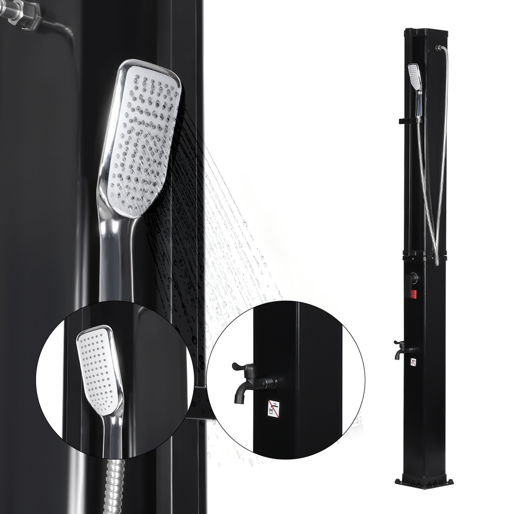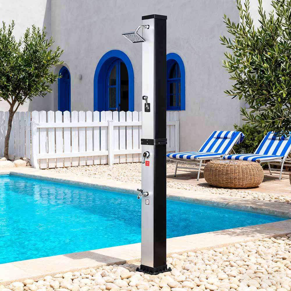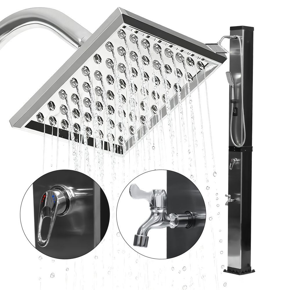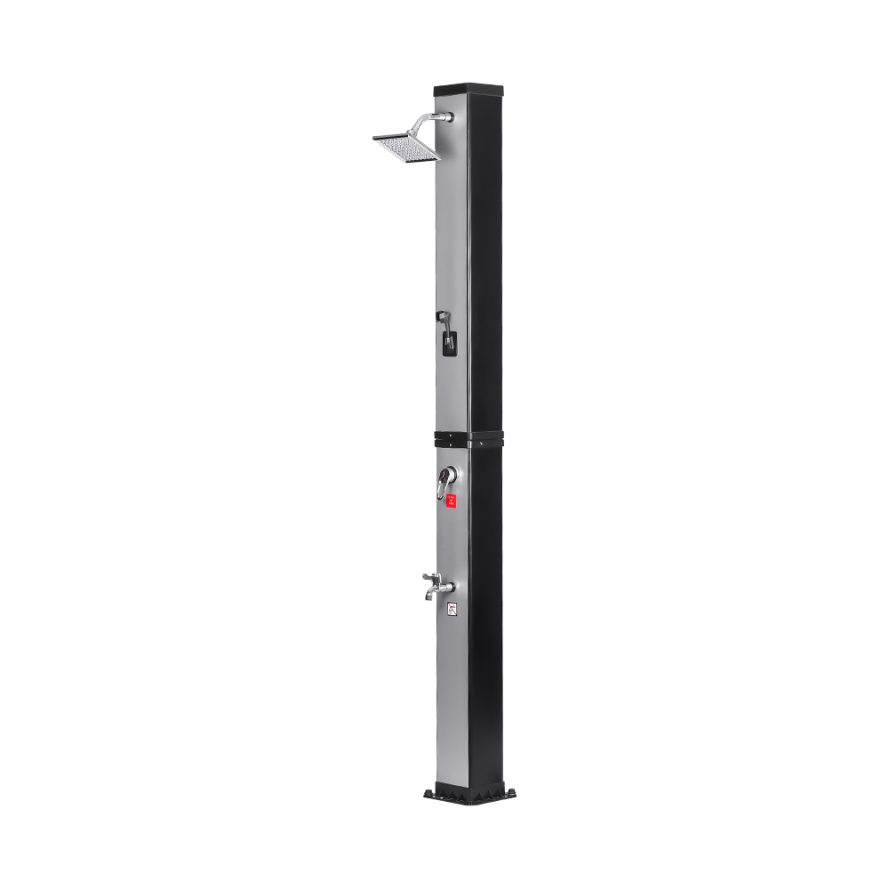 این دوش خورشیدی چند منظوره با ظرفیت بزرگ LY35L07 فقط از نور خورشید برای گرم کردن آب تا دمای 60 درجه سانتیگراد استفاده می کند و راهی برای صرفه جویی در انرژی و سازگار با محیط زیست برای لذت بردن از حمام کردن در فضای باز است. پر کردن آن ساده است - فقط یک شلنگ استاندارد باغبانی را به ورودی وصل کنید و لوله دوش به سرعت برای استفاده آماده می شود. یک قفسه فلزی داخلی مکانی مناسب برای نگهداری ژل دوش و سایر لوازم ضروری است، در حالی که سوراخهای زهکشی در پایه باعث میشود که آب به طور موثر جریان یابد و منطقه را خشک و مرتب نگه دارد. این دوش خورشیدی با در نظر گرفتن تطبیق پذیری طراحی شده است، این دوش خورشیدی برای تنظیمات مختلف، چه در ساحل، کنار استخر، در خانه های تعطیلات، هتل یا خانه های ییلاقی عالی است. ساختار انعطاف پذیر آن به آن اجازه می دهد تا با محیط های مختلف سازگار شود.