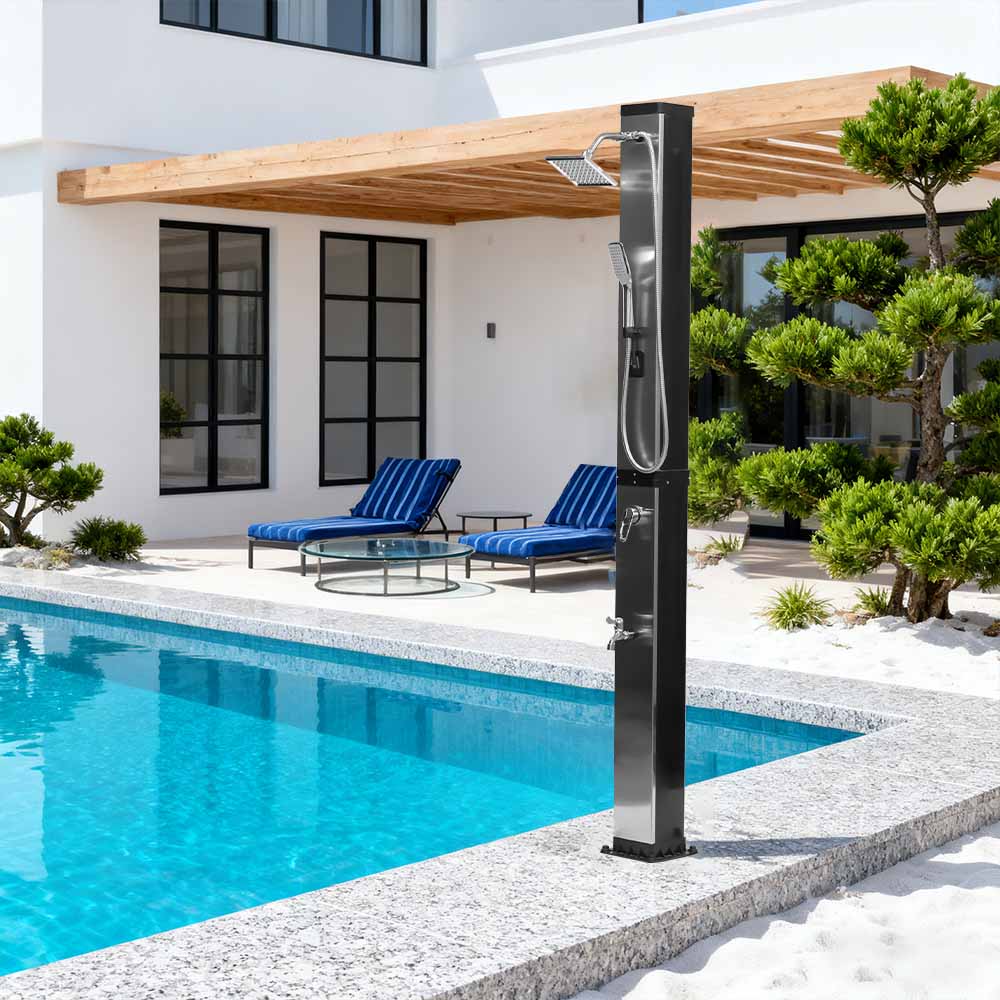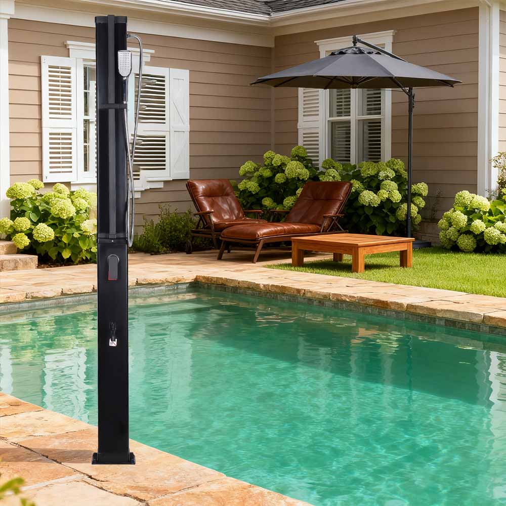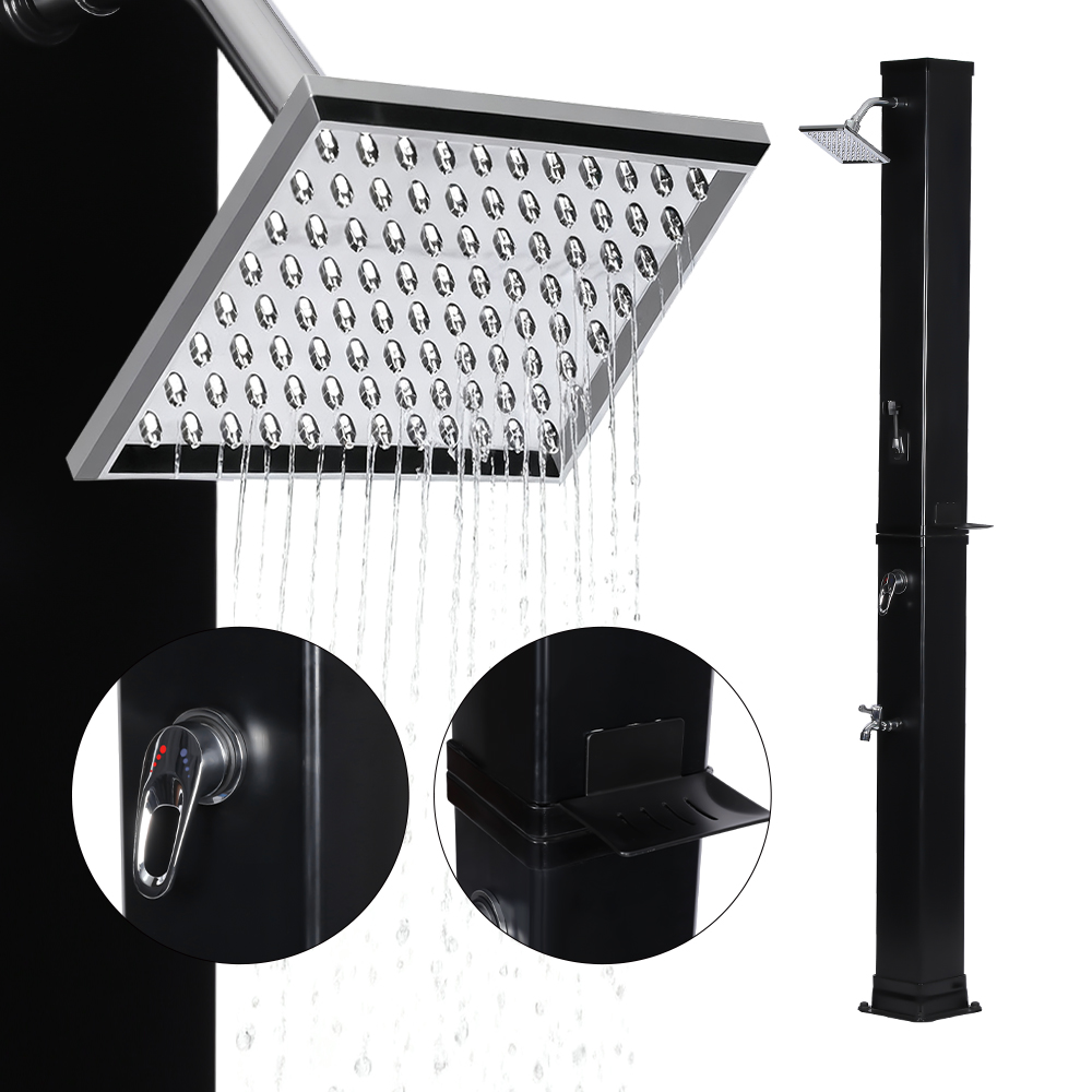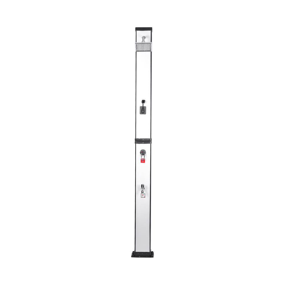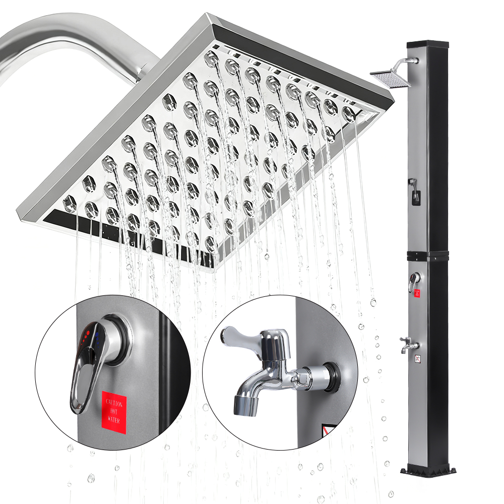 این دوش خورشیدی چند منظوره با ظرفیت بزرگ LY35L07 فقط از نور خورشید برای گرم کردن آب تا دمای 60 درجه سانتیگراد استفاده می کند و راهی برای صرفه جویی در انرژی و سازگار با محیط زیست برای لذت بردن از حمام کردن در فضای باز است. پر کردن آن ساده است - فقط یک شلنگ استاندارد باغبانی را به ورودی وصل کنید و لوله دوش به سرعت برای استفاده آماده می شود. یک قفسه فلزی داخلی مکانی مناسب برای نگهداری ژل دوش و سایر لوازم ضروری است، در حالی که سوراخهای زهکشی در پایه باعث میشود که آب به طور موثر جریان یابد و منطقه را خشک و مرتب نگه دارد. این دوش خورشیدی با در نظر گرفتن تطبیق پذیری طراحی شده است، این دوش خورشیدی برای تنظیمات مختلف، چه در ساحل، کنار استخر، در خانه های تعطیلات، هتل یا خانه های ییلاقی عالی است. ساختار انعطاف پذیر آن به آن اجازه می دهد تا با محیط های مختلف سازگار شود.
