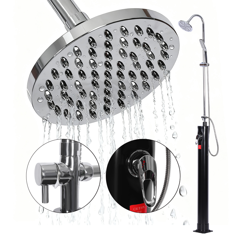 دوش ستونی خورشیدی استخر باغ در فضای باز LY08L03 8L دارای یک میکسر تک اهرمی است که با ترکیب آب گرم لوله دوش با آب سرد شلنگ باغچه، دمای آب را دقیقاً تنظیم می کند. مجهز به اتصال شیلنگ باغ برای پر کردن راحت و یک پلاگین تخلیه است که امکان تخلیه کامل آب را برای ذخیره ایمن زمستانی فراهم می کند. دوش که بر روی یک پایه فولادی ضد زنگ محکم برای پایداری ساخته شده است، قطعات جداگانه دوش به طور ایمن با پیچ بسته می شوند و برای استفاده ایمن باید به زمین متصل شود. دستورالعمل های عملیاتی گنجانده شده و به چندین زبان موجود است.